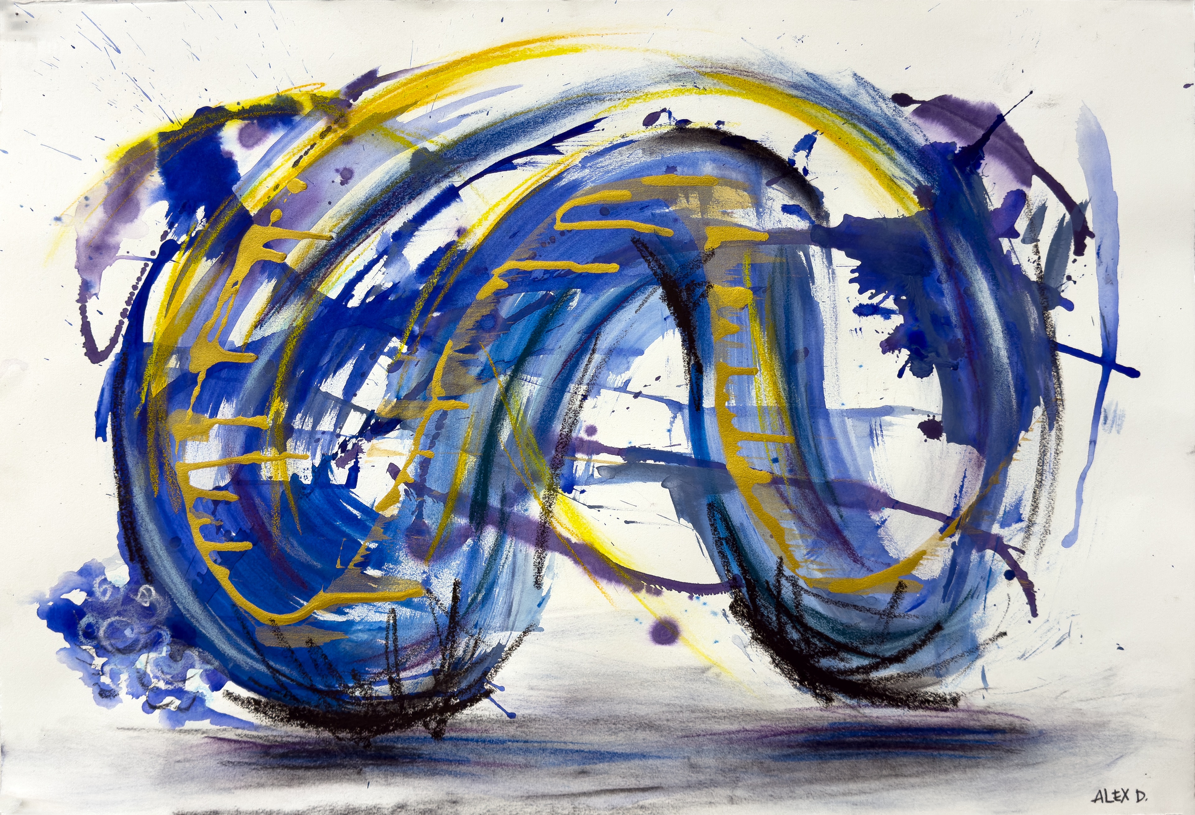 movement by spreading ink in a curvilinear path. There are parts of the path that have splatters or
